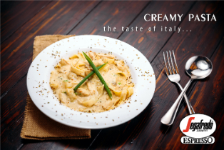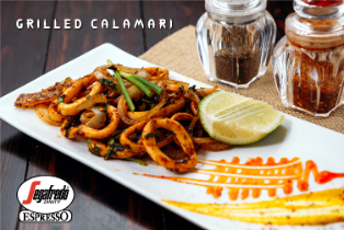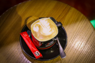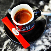 LAYERED ESPRESSO, VANILA SYRUP, CARAMEL POWDER & MICRO FOAM