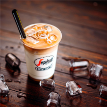 Espresso shot, ice cube, salted caramel syrup & cold milk