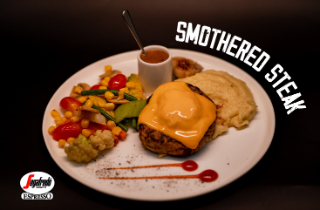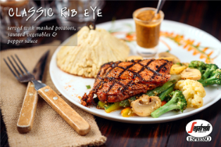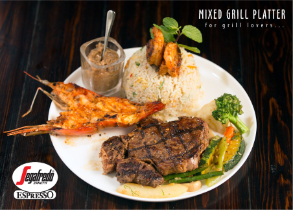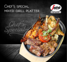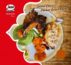 Lamb Chop, Spinach Rice, Cheesy Chicken Breast, Grill Potatoes, Coleslaw Salad.