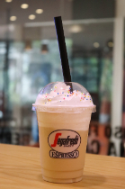 Blended Espresso W/white chocolate sauce, Vanilla syrup