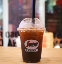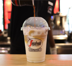 Espresso shot, ice cube, vanilla syrup & cold milk