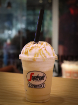 Blended Espresso W/white chocolate sauce, hazelnut syrup. topped w/whipping cream