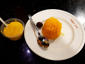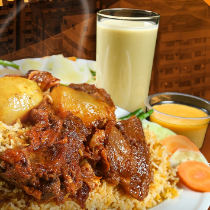 Plain Polaw, Chicken Roast, Beef Rezala, Borhani, Jorda/Firni, Chutney, Salad.