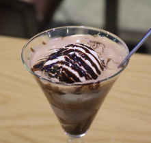 Blended Espresso, Chocolate ice cream, Topped w/whipping cream
