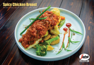 Lamb Chop, Spinach Rice, Cheesy Chicken Breast, Grill Potatoes, Coleslaw Salad.